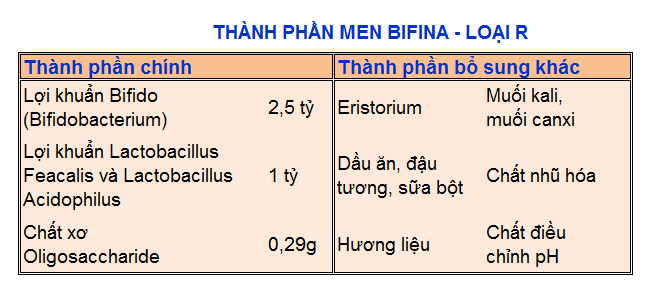 - Thành phần lợi khuẩn có trong Men Vi Sinh Health Aid Bifina: