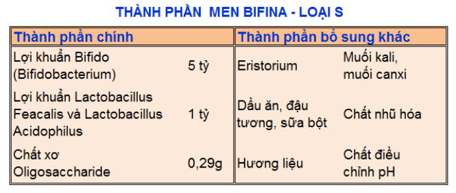 - Thành phần lợi khuẩn có trong Men Vi Sinh Health Aid Bifina: