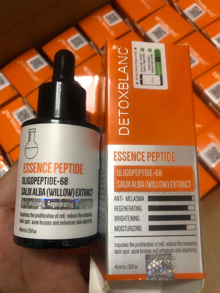 - Serum trị nám Essence Peptide loại bỏ độc tố, làm đều màu, dưỡng trắng da đem lại vẻ ngoài rạng rỡ và tươi trẻ.