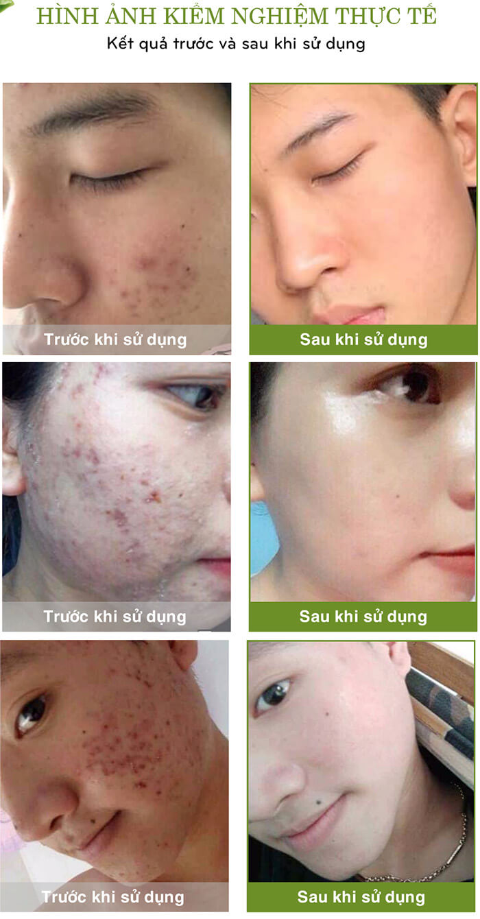 Sản phẩm có công dụng đặc biệt hiệu quả trong việc điều trị tất cả các loại mụn như mụn bọc, mụn mủ, mụn trứng cá và thâm nám, sẹo, tàn nhang hay mụn do dị ứng mỹ phẩm, thường xuyên phải sử dụng mỹ phẩm. Do đó sẽ giúp các chị em phụ nữ có được một làn da căng mọng, sạch mụn, hồng hào và tươi trẻ.