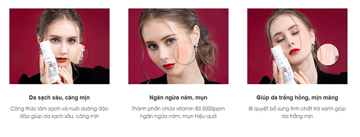 Vì sản phẩm được kết hợp từ nhiều thành phần có nguồn gốc hoàn toàn từ thiên nhiên và được nghiên cứu bởi công nghệ chuyên sâu của Pháp. Nên thực sự hiệu quả trong việc làm sạch sâu, thải độc tố da và se khít lỗ chân lông cho chị em phụ nữ có một làn da được phục hồi trắng hồng, mịn màng.