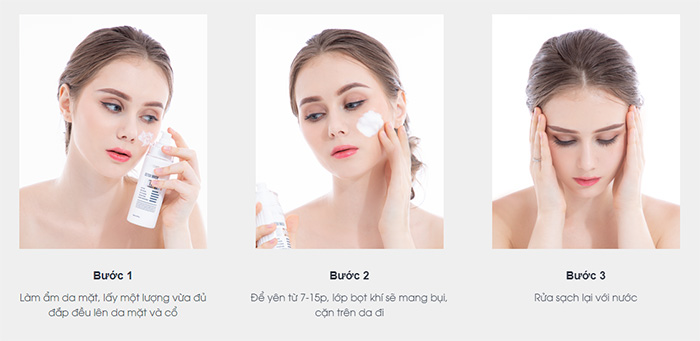 - Bước 3: Sau 3 phút, mặt nạ sẽ sủi bọt, đẩy các bụi bẩn, thải độc tố ra ngoài bề mặt da