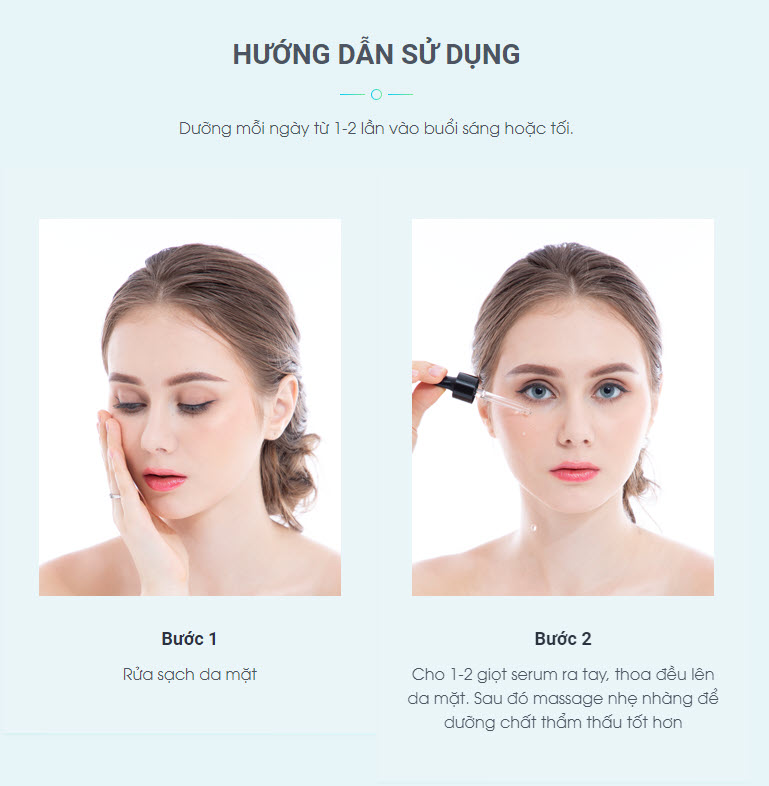 - Bước 2: Lấy 1-2 giọt serum ra tay, thoa đều lên mặt