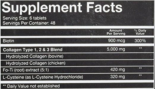 Các thành phần khác có trong viên uống collagen:- Collagen 1 2 & 3 (có chứa các lượng khác nhau của chondroitin và hyaluronic acid), Calcium ascorbate và Magnesium Stearate.